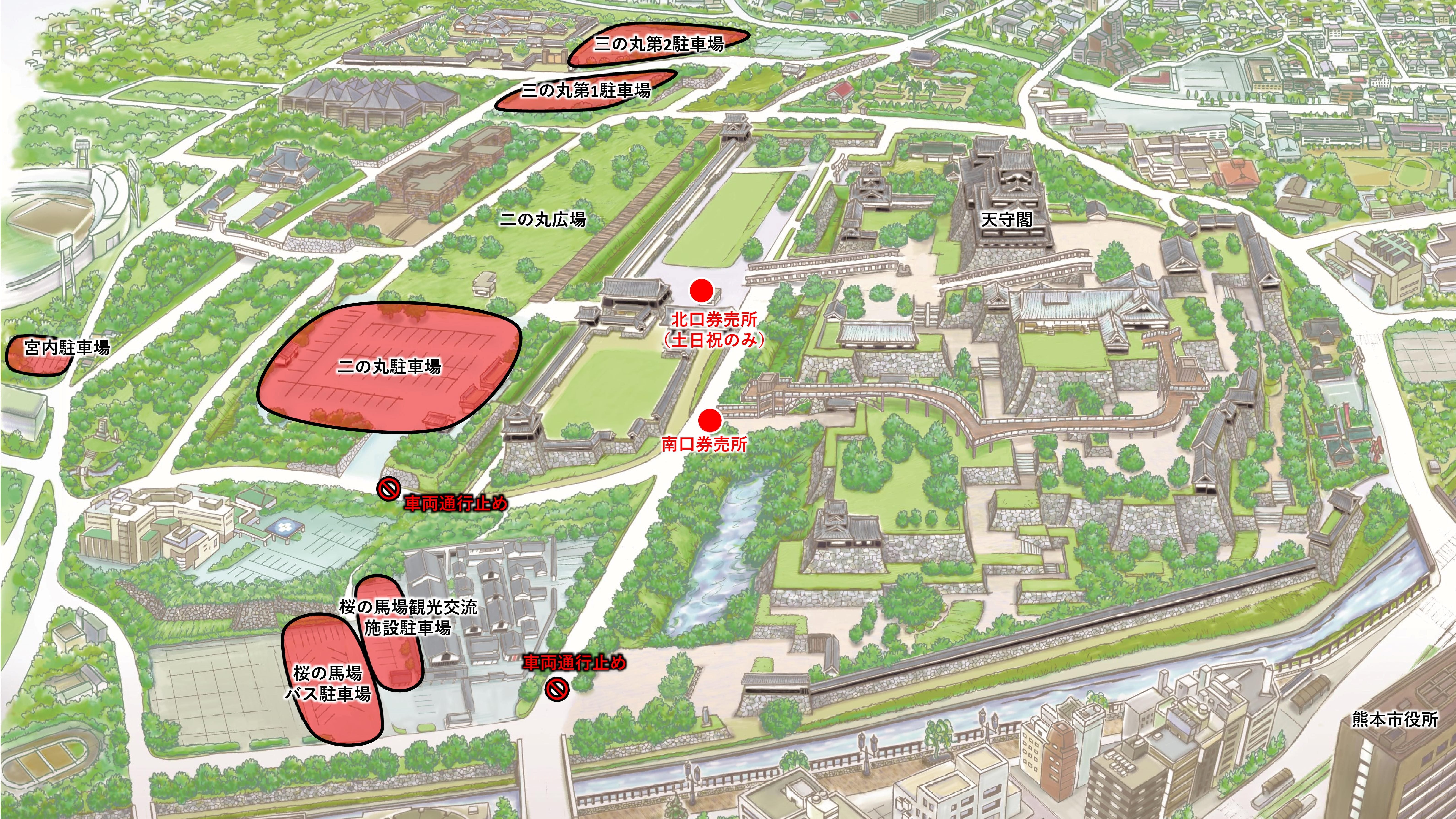 | 桜の馬場城彩苑駐車場 | 8:00~22:30(入庫21:30) | 乗用車 | 58台 |
